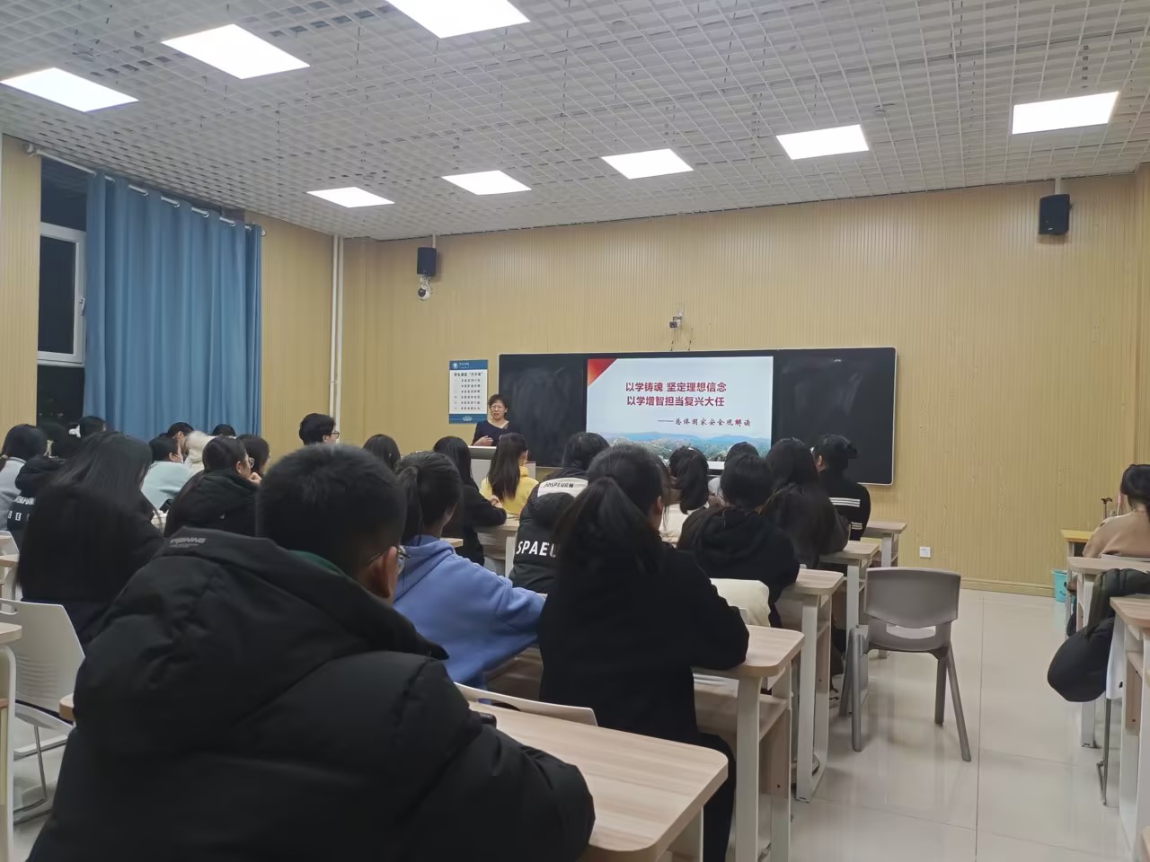 12月7日晚在崇文楼B125,学院党总支书记刘凤琴以《以学铸魂 坚定理想信念 以学增智 担当复兴大任》为题为全体学生党员和积极分子讲授专题党课。