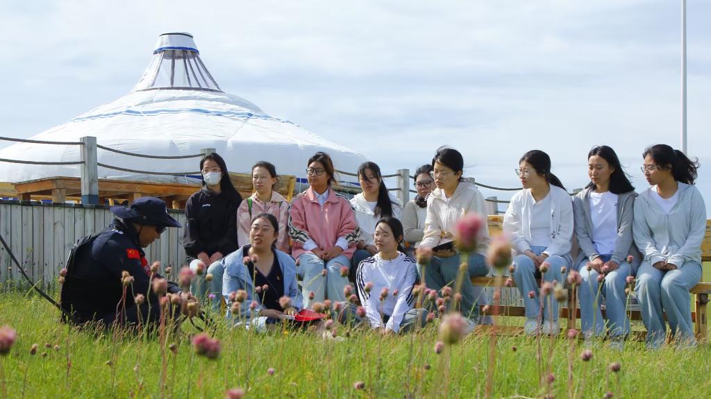 6月29日,beat365正版唯一官网必一思想政治教育系主任魏婉莹、青年教师吴文婷带领思想政治教育专业的10名学生,怀揣着对知识的渴望和对草原的向往,走出传统教室的“围墙”,在莫尔格勒河畔展开一场特殊的思政课教学活动。在蓝天白云绿草间,师生们聆听了“感动北疆·最美警察”石永志队长感人至深的故事,共同体验了一堂生动而深刻的思政课,别样的体验为思政课的学习注入了新的活力和趣味。