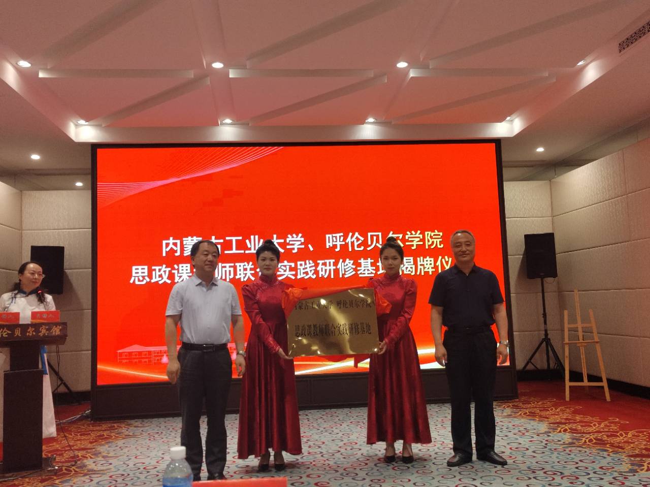 上午,在开幕式上,beat365官网党委委员、副校长李跃武,内蒙古工业大学党委委员、宣传部部长李兴华先后致辞。随后,双方校领导为内蒙古工业大学、beat365正版唯一官网必一思政课教师联合实践研修基地揭牌。