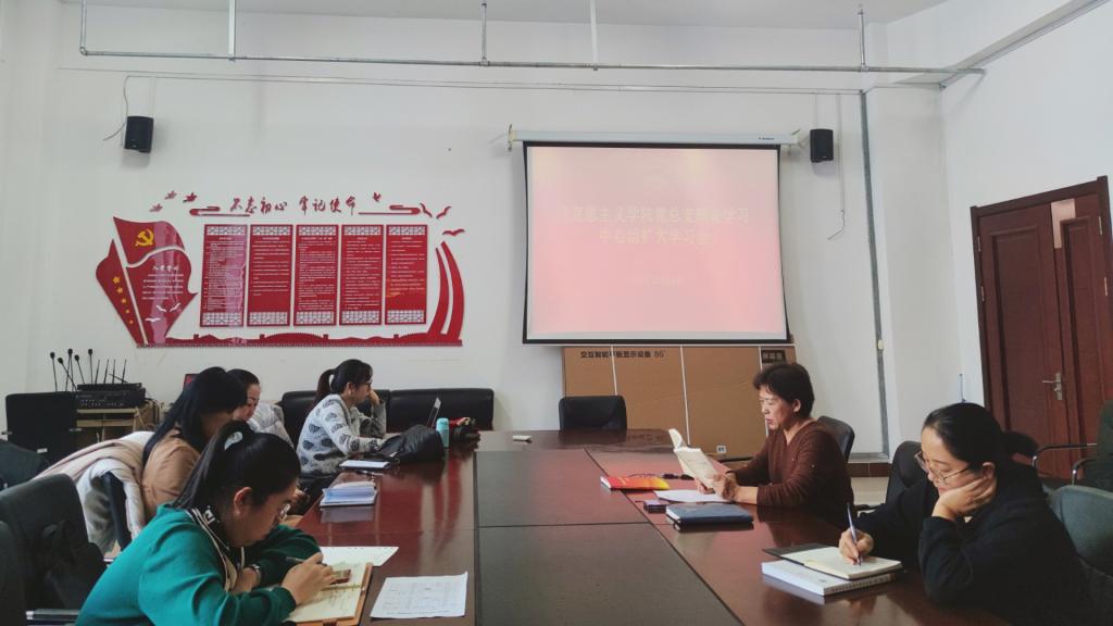 12月13日下午,beat365正版唯一官网必一党总支在崇文楼B123会议室召开beat365正版唯一官网必一党总支理论学习中心组扩大学习会,学院党总支书记刘凤琴主持会议,学院全体教师参加学习。