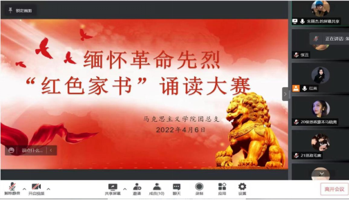 为弘扬革命精神,重温革命历史、缅怀革命先烈,传承红色基因,营造浓厚的“读好书,读红色经典”的氛围,切实引导青年学生以习近平新时代中国特色社会主义思想为根本遵循。beat365正版唯一官网必一于2022年4月6日在线上举办缅怀革命先烈“红色家书”诵读比赛。