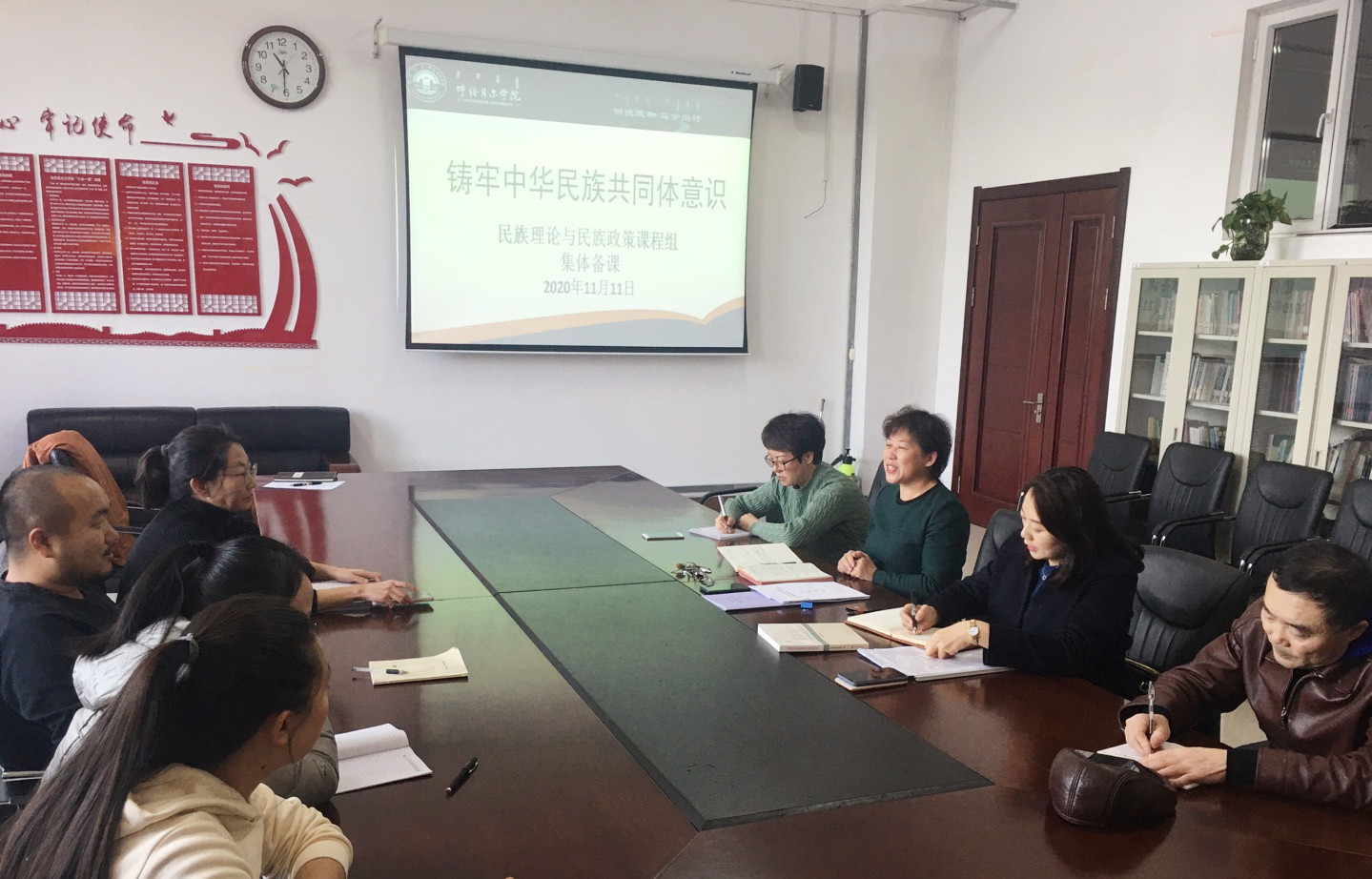 为推动中华民族共同体教育进课堂,引领各族学子深刻认识并领会中华民族共同体的形成和发展,不断铸牢中华民族共同体意识,2020年11月11日下午,beat365正版唯一官网必一民族理论与民族政策课程组在崇文楼B123组织召开了以“铸牢中华民族共同意识”为主题集体备课会。会议由刘凤琴书记主持,李俏副院长及“民族理论与民族政策”课程组全体教师参加。