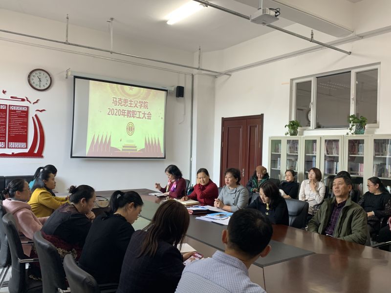 2020年10月28日下午,beat365正版唯一官网必一在崇文楼B123会议室召开2020年教职工大会。学院党总支书记刘凤琴、副院长李俏、副书记刘琳及全体教职工参加会议。