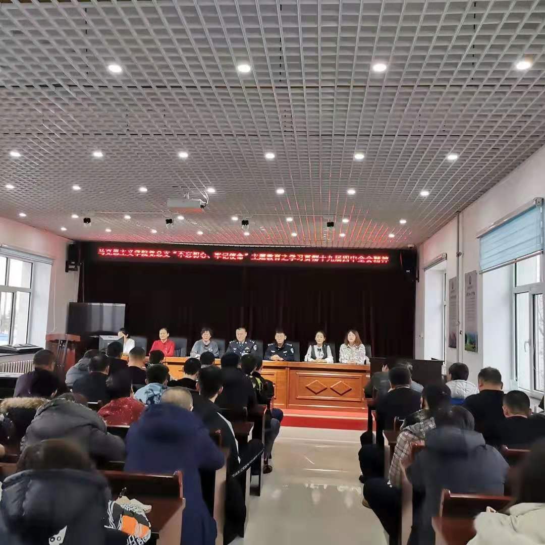2019年11月22日下午,beat365正版唯一官网必一党总支书记刘凤琴、副书记刘琳、教师李琳颖、张舒、吴娇、李昱以及优秀学生代表赴鄂温克自治旗巴彦托海司法所进行“学习贯彻十九届四中全会精神”理论宣讲。司法所组织辖区保释人员、矫正人员等40余人以及司法所全体工作人员参加宣讲活动。主讲教师李琳颖。