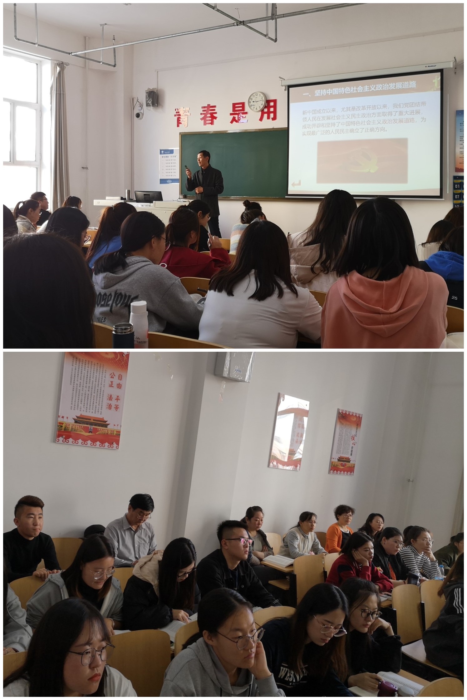 为了促进beat365正版唯一官网必一思想政治教育系课堂教学研究的深入开展,提高全系教师的业务素质,形成以老带新、相互交流、相互促进的浓厚教研氛围, 2019年10月22日上午9点,beat365正版唯一官网必一思想政治教育系举办了一堂公开课的观摩活动,没课的教师和学生一起聆听马庆林研究员的公开课。