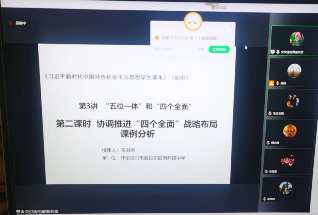 讲座中,宋洪涛老师针对读本的重难点,结合初中的教学特点从读本内容、学情概况、教学目标、教学重难点及教学过程几个方面进行了全面的讲解。讲座结束后,宋洪涛老师针对初中教学中常见问题与学生进行了互动交流。在线的200余名学生也对初中思政课教学中的问题、难点和疑惑向宋洪涛老师进行了提问,教研活动在轻松愉悦的氛围中结束。