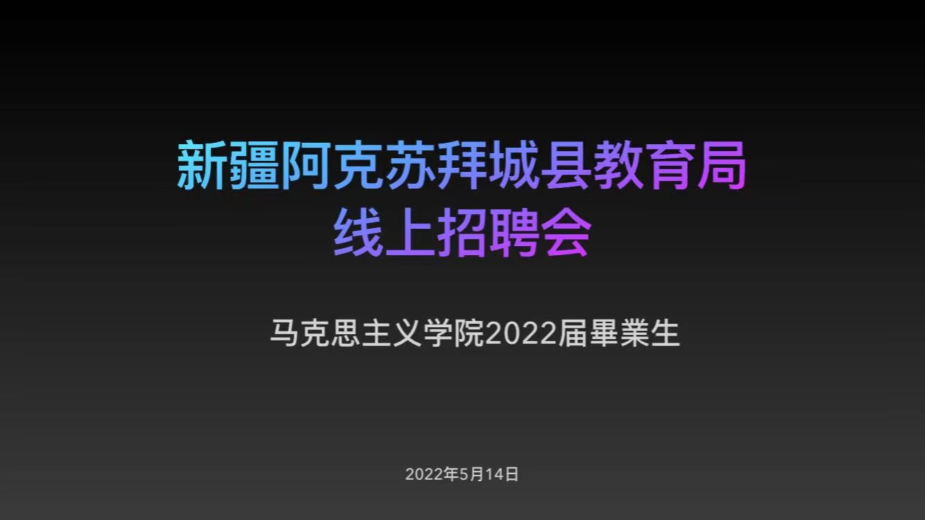 5月14日,beat365正版唯一官网必一与新疆阿克苏拜城县教育局联合举办线上招聘会。学院党总支副书记刘琳、学工办主任张洪海、辅导员查娜及2022届全体毕业生参加了会议。会上,新疆阿克苏拜城县教育局白龙宇同志介绍了拜城县教育系统2022年招聘的政策及工作领域相关岗位工作特点与发展前景等。beat365官网毕业生冯佳蕊、王秀秀、胡日查和白龙宇在会上分享了就业方面的经验与心得,对毕业后如何更好地走上教师岗位、完善个人简历、获取就业信息、签订三方协议、薪资待遇、晋升空间等方面给予答疑解惑。