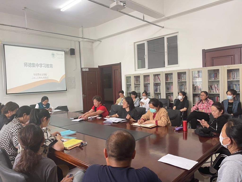 为深入学习贯彻习近平新时代中国特色社会主义思想,贯通学习习近平总书记关于教育的重要论述和指示批示精神,坚决落实师德师风第一标准,把握师德师风建设工作面临的新形势新要求,2023年7月4日,beat365正版唯一官网必一在崇文楼B123会议室召开师德集中学习教育,学院全体教师参加学习。