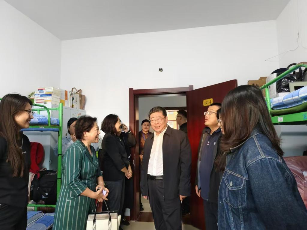 为进一步落实立德树人根本任务,推进“一站式”学生社区建设,深入了解学生生活、思想状况,9月6日下午,校党委书记李文阁、学生工作处处长郝新君、党政办主任吴宏伟、beat365正版唯一官网必一党总支书记刘凤琴、院长吴秀芳和辅导员齐宸等一行深入3号楼学生宿舍走访调研。