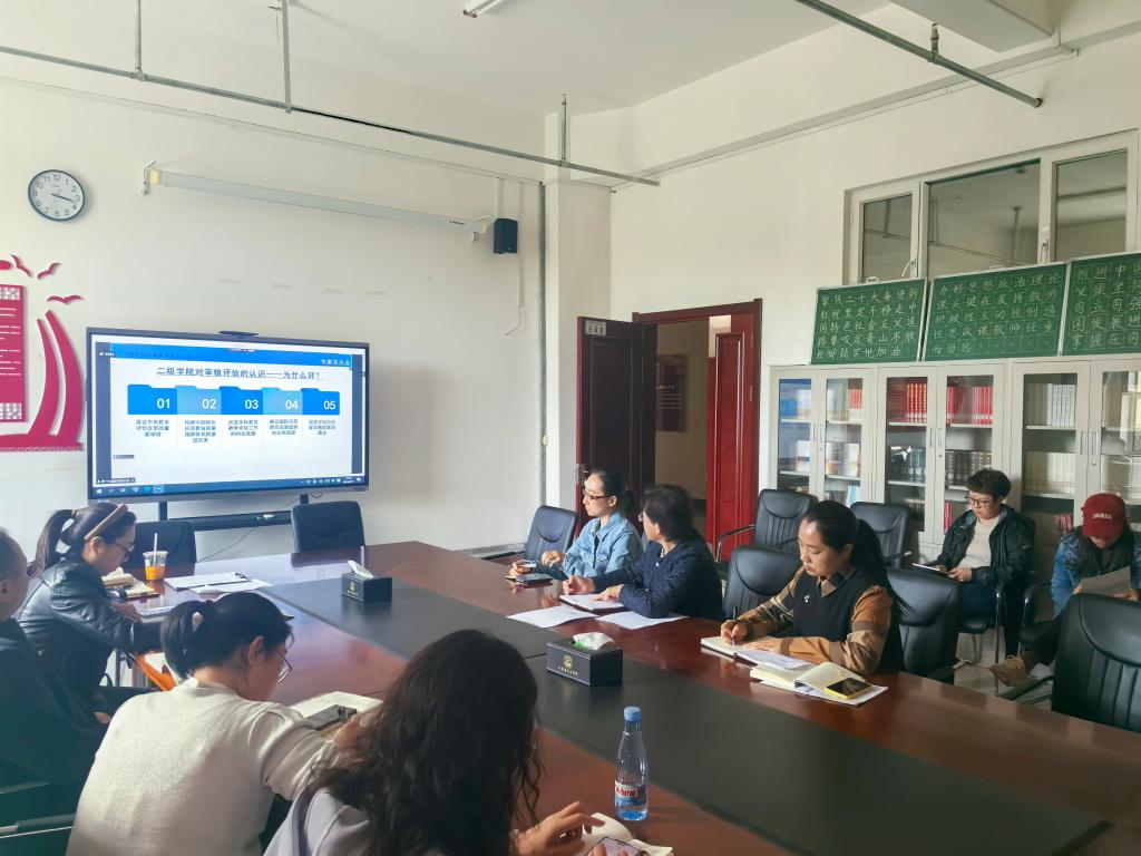 于远望教授从二级学院在审核评估中的地位、专家关注的常见问题与解决策略等方面进行讲解,为我院教职工详细剖析了审核评估过程中可能遇到的各类问题,并提供了切实可行的解决策略,为学院的审核评估前期准备工作提供了丰富经验。明兰副院长在总结发言中指出,全体教师要统一思想,提高认识,将评估工作视为提升教学质量、深化教学改革的重要契机,以高度的责任感和使命感,全力以赴投入到评估准备工作中,确保各项任务按时按质完成。