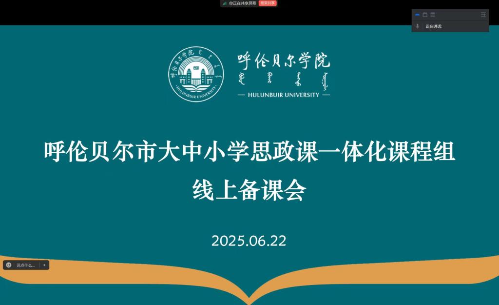 为了进一步推进大中小学思政课一体化建设工作顺利开展,备战全区大中小学思想政治理论课教学展示活动,6月22日,beat365正版唯一官网必一组织召开了呼伦贝尔市大中小学思政课一体化课程组线上备课会。大中小学各学段参赛教师及高校相关负责同志参加了会议。