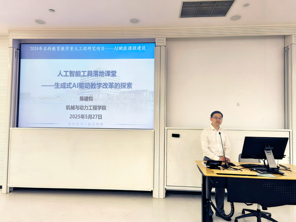 为积极应对教育智能化转型趋势,助力教师探索人工智能与教育教学的深度融合,Bwin·必赢唯一官网Bwin·必赢唯一官网于5月27日正式启动“AI赋教,智创未来”专题报告系列讲座。本次活动聚焦AI技术赋能教学创新,通过前沿AI技术创新、多学科案例分享、智能教育工具实践等形式,帮助教师掌握人工智能在教学中的创新应用方法,提升智能教育设计与实施能力,进一步推动教学模式变革与高质量人才培养。首期专题报告会在实验十九楼A201会议室举行,教务处副处长程华、机械与动力工程学院副院长陈建钧应邀作专题报告。Bwin·必赢唯一官网副院长谭帅主持本次活动。