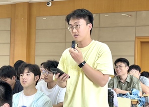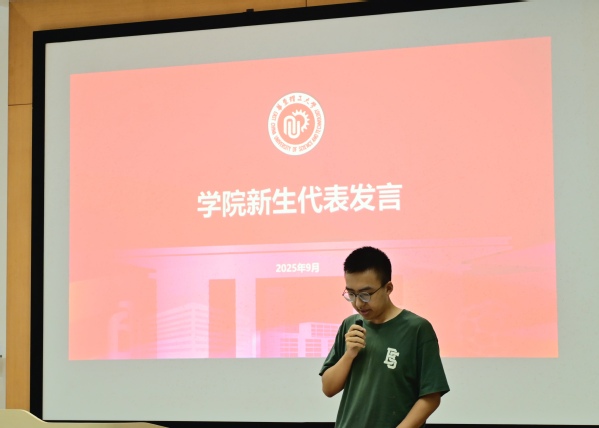控制科学与工程专业学生孔祥海于八教201场馆作为新生代表发言,他回顾了从本科的好奇到备考的坚持,也坦言科研之路不乏挑战,但有信心迎难而上。他与同学们定下了三个约定,一是守好初心,严谨对待科研;二是攻克技术难关,主动突破舒适区;三是永葆协作热诚,发挥团队力量,表示将以“追光者”姿态,与时代同频、与学院共成长。