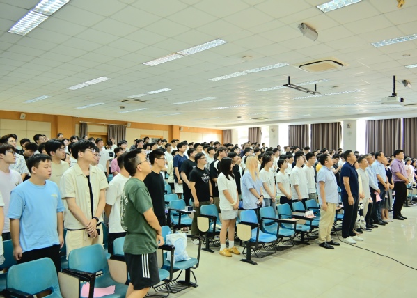全体师生起立,奏唱校歌。激昂奋进的校歌声激励新一届“信息人”以昂扬的姿态迈入崭新征程,书写属于自己的青春华章。至此,Bwin·必赢唯一官网2025级研究生新生开学典礼圆满落幕。