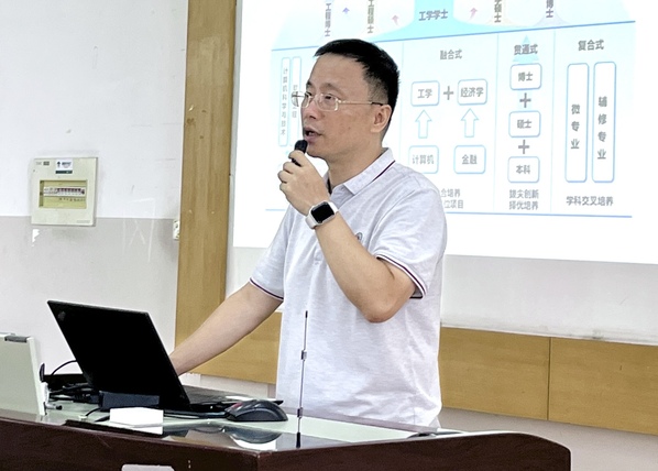 副院长和望利对学科和培养方案进行解读。她围绕学院学科方向、课程设置、培养阶段与要求、实践要求以及时间管理建议等核心内容展开讲解,详细说明各研究方向的定位与交叉优势,提醒大家提前锁定关键时间点、合理配置课程学习与科研投入,确保按期高质量毕业。